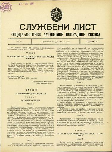 Ključne besede:uradni listi, Kosovo, Jugoslavija