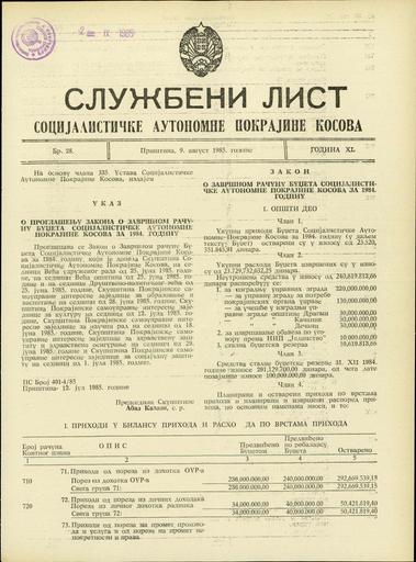Ključne besede:uradni listi, Kosovo, Jugoslavija