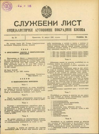 Ključne besede:uradni listi, Kosovo, Jugoslavija