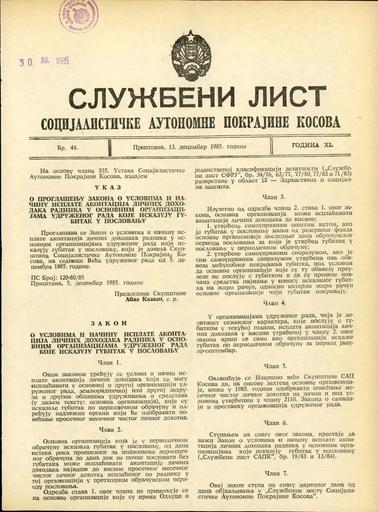 Ključne besede:uradni listi, Kosovo, Jugoslavija
