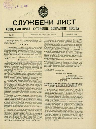Ključne besede:uradni listi, Kosovo, Jugoslavija