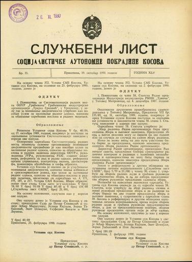 Ključne besede:uradni listi, Kosovo, Jugoslavija