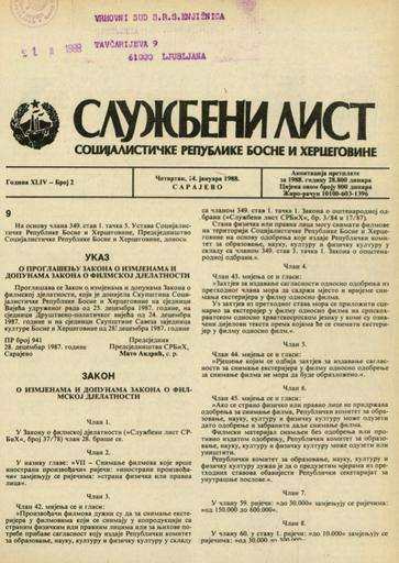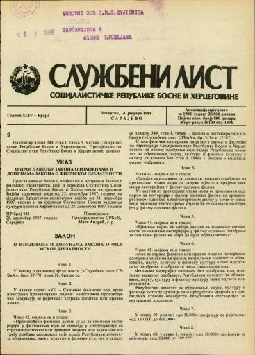 Založnik(i):Službeni list SR BiH, Sarajevo