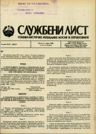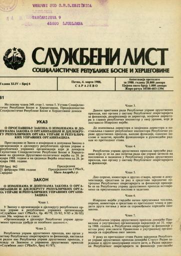 Založnik(i):Službeni list SR BiH, Sarajevo