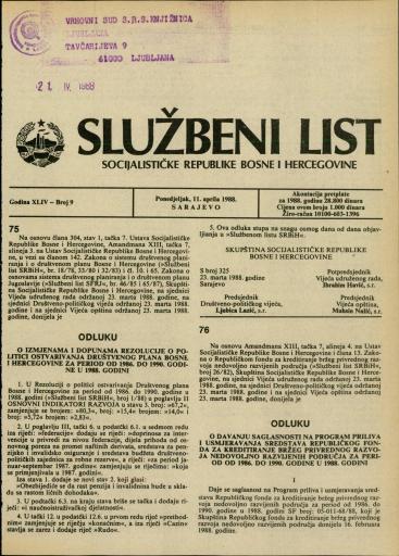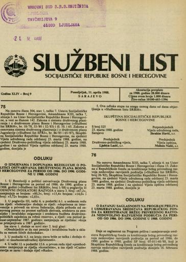 Založnik(i):Službeni list SR BiH, Sarajevo
