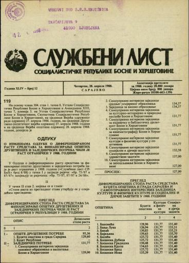 Založnik(i):Službeni list SR BiH, Sarajevo