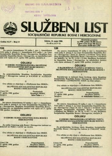 Založnik(i):Službeni list SR BiH, Sarajevo