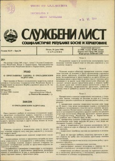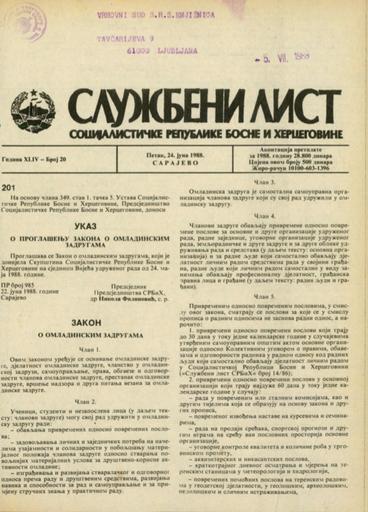 Založnik(i):Službeni list SR BiH, Sarajevo