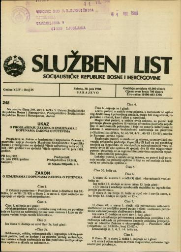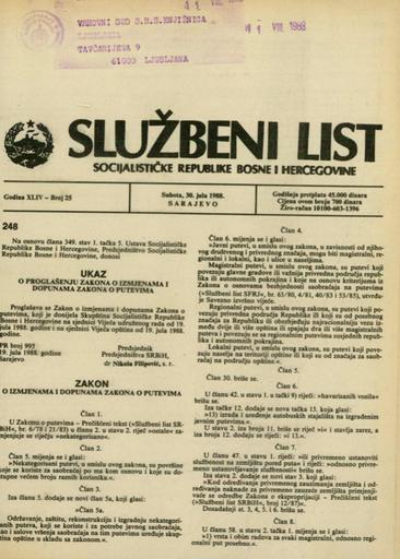 Založnik(i):Službeni list SR BiH, Sarajevo