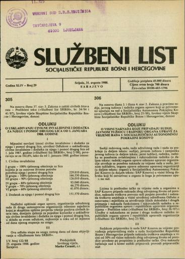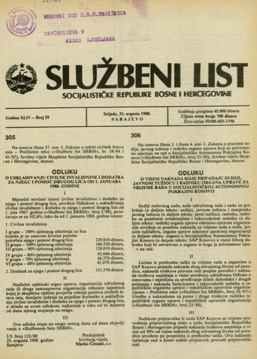 Založnik(i):Službeni list SR BiH, Sarajevo