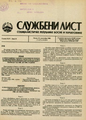 Založnik(i):Službeni list SR BiH, Sarajevo