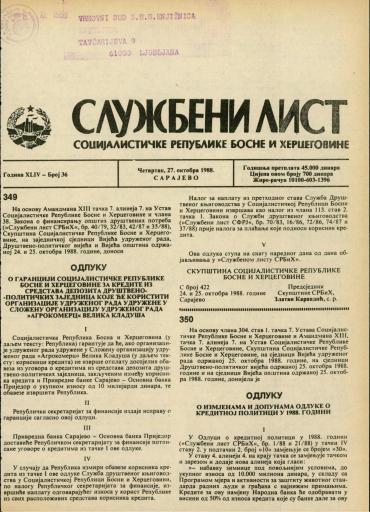 Založnik(i):Službeni list SR BiH, Sarajevo