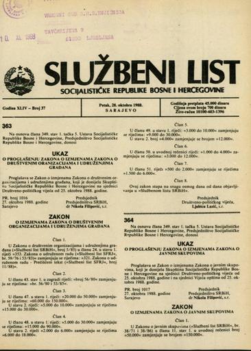 Založnik(i):Službeni list SR BiH, Sarajevo