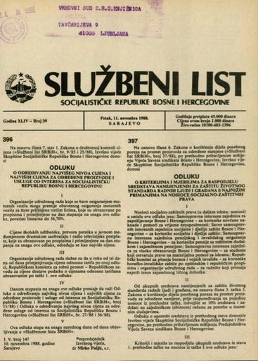 Založnik(i):Službeni list SR BiH, Sarajevo