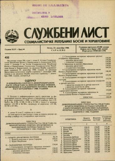 Založnik(i):Službeni list SR BiH, Sarajevo