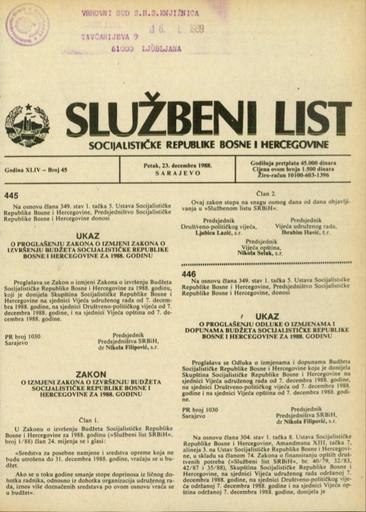 Založnik(i):Službeni list SR BiH, Sarajevo