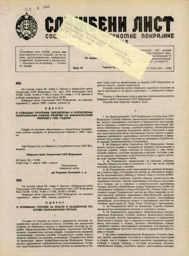 Založnik(i):Pokrajinski komitet za zakonodavstvo, Novi Sad