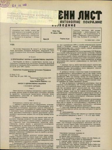 Založnik(i):Pokrajinski komitet za zakonodavstvo, Novi Sad