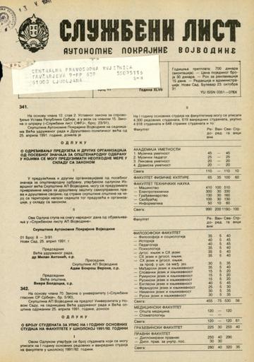 Založnik(i):Pokrajinski komitet za zakonodavstvo, Novi Sad