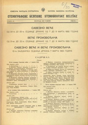- Савезно веће и веће прoизвoђача, 12-та заједничка седница држана 7 марта 1955 године