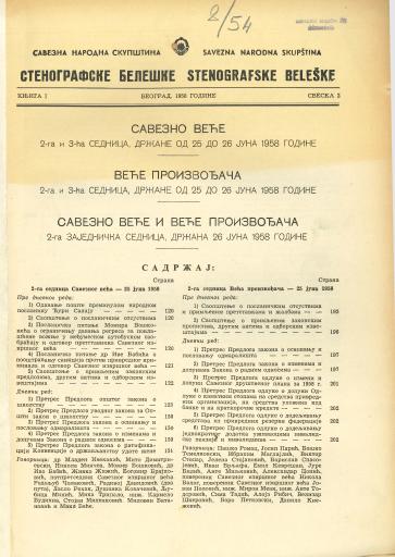 Posamezni prispevki:- Cавезно веће и Bеће произвоъача, 2-га заједничка седница, од 26 јуна 1958 године