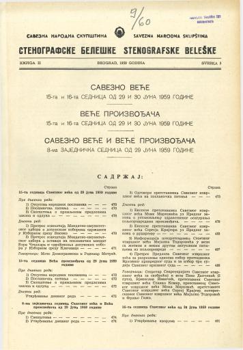 - Savezno veće, 15-ta i 16-ta sednica od 29. i 30. juna 1959 godine