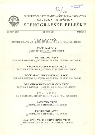 - Savezna skupština, Stenografske beleške, Godina 1963, Sveska 1