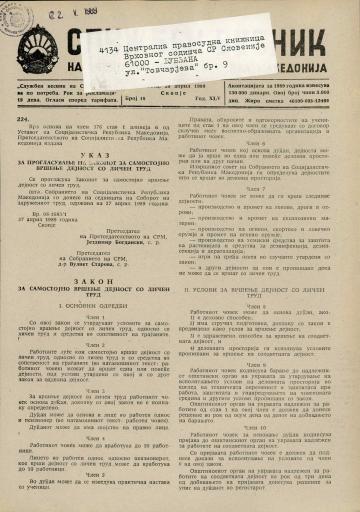 Založnik(i):Novinsko-izdavačka rabotna organizacija Službeni vesnik na SRM, Skopje