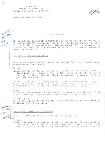32. seja Komisije za ustavna vprašanja, 9. 5. 1991, 13. 5. 1991, 14. 5. 1991, 20. 5. 1991, 23. 5. 1991