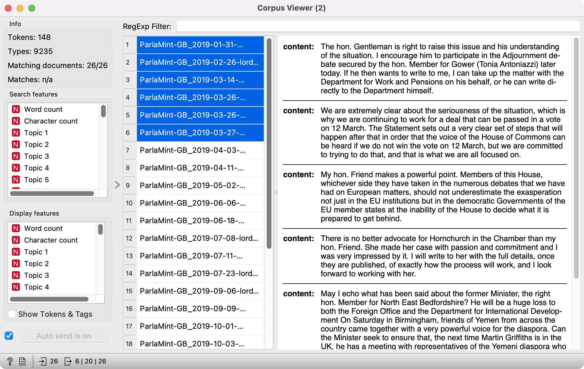 V demokratičnih državah parlament deluje kot osrednje predstavniško in zakonodajno telo. Digitalni zapisi parlamentarnih razprav omogočajo raziskovanje političnega, družbenega in kulturnega vzdušje določenega časa. Ti zapisi so raziskovalcem tipično na voljo v obliki korpusov.