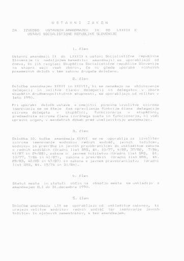 Ustavni zakon za izvedbo amandmajev IX do LXXXIX k Ustavi Socialistične republike Slovenije, 27. 9. 1989