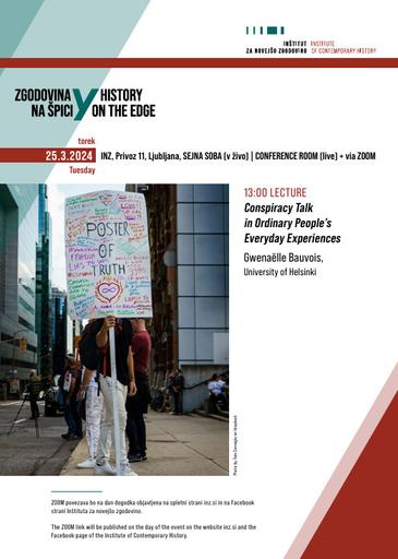 Predavanje temelji na raziskavi, izvedeni v okviru projekta 'American Voices Project', skupne pobude univerz Stanford in Princeton, v sklopu katere so intervjuvali več tisoč državljanov. Ta prispevek analizira govor o zarotah, ki se spontano pojavi v teh življenjskih intervjujih, njegov cilj pa je raziskati, kako zarotniška kultura oblikuje vsakdanje izkušnje običajnih ljudi.