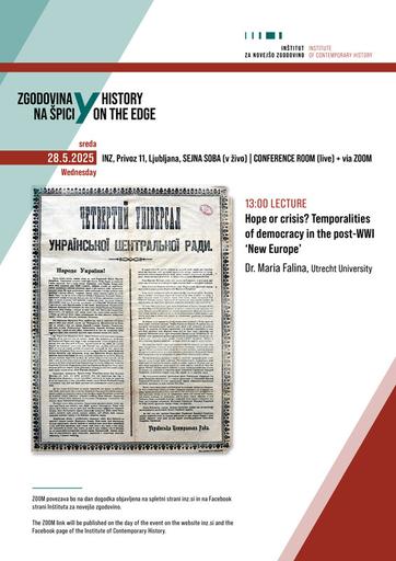 Vojna in njen konec sta Evropejce naredila še posebej občutljive za teme časa, smrti in obnove. Napetosti med preteklostjo in prihodnostjo so se v različnih nacionalnih in političnih kulturah odvijale različno. Ustvarile so različne časovnosti, ki so sobivale, se prekrivale in nadomeščale. Ta medsebojna interakcija je najočitnejša v kontekstih, ko so stare imperialne politične strukture nadomeščale novoustanovljene ali temeljno premišljene nacionalne države. Predavanje reflektira različne časovnosti politike »nove Evrope« v neposrednem povojnem obdobju. Posebno pozornost posveča vlogi demokracije.