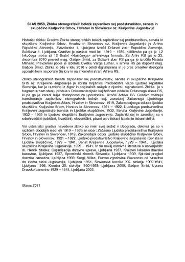 AS 2058, Stenographic Minutes of the Kingdom of Yugoslavia 1919-1939