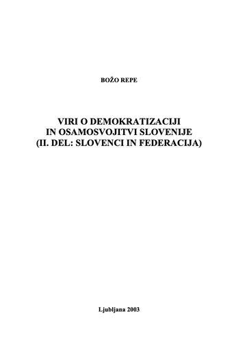 | Perovšek, Jurij ; Granda, Stane | Slovenska osamosvojitev 1991 : pričevanja in analize : simpozij, Brežice, 21. in 22. junij 2001 : zbornik | Ljubljana | Državni zbor Republike Slovenije : Zveza zgodovinskih društev Slovenije, 2002 | 2002 |