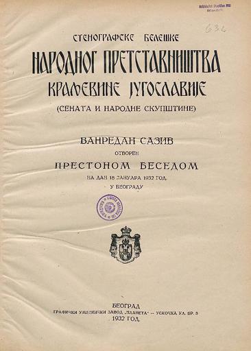 SI AS 2058/4, Stenografske beležke Narodnega predstavništva Kraljevine Jugoslavije (Senata in Narodne skupščine), 1932