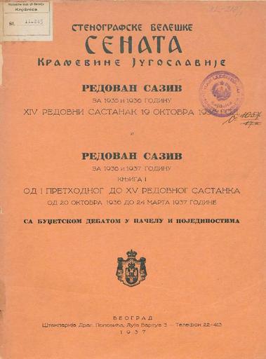 SI AS 2058/15, Stenografske beležke Senata Kraljevine Jugoslavije, 1936-1937