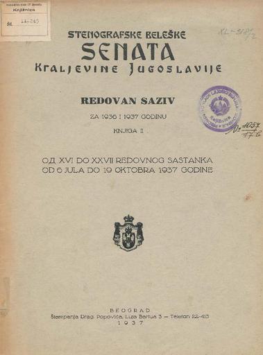 SI AS 2058/16, Stenografske beležke Senata Kraljevine Jugoslavije, 1937