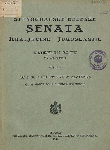 SI AS 2058/19, Stenografske beležke Senata Kraljevine Jugoslavije, 1932