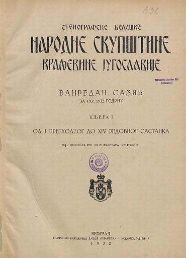 SI AS 2058/34, Stenografske beležke Narodne skupščine Kraljevine Jugoslavije, 1931-1932