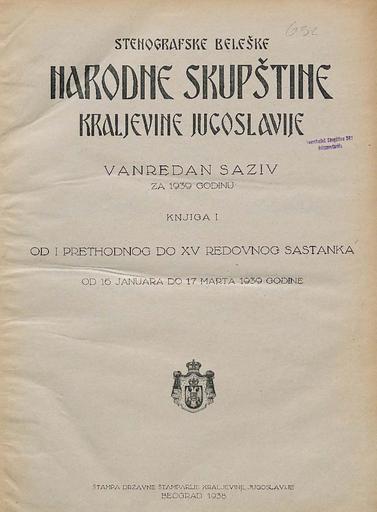 SI AS 2058/36, Stenografske beležke Narodne skupščine Kraljevine Jugoslavije, 1939