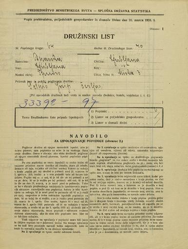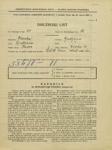 SI_ZAL_LJU/0504, t.e. 327, Popis prebivalstva 31. 3. 1931, Miklošičeva c. - Mivka