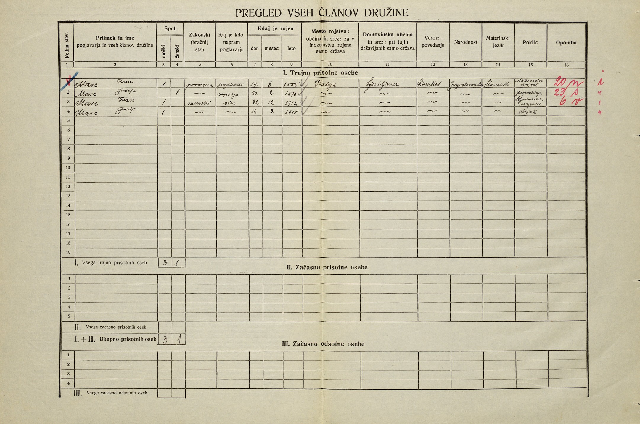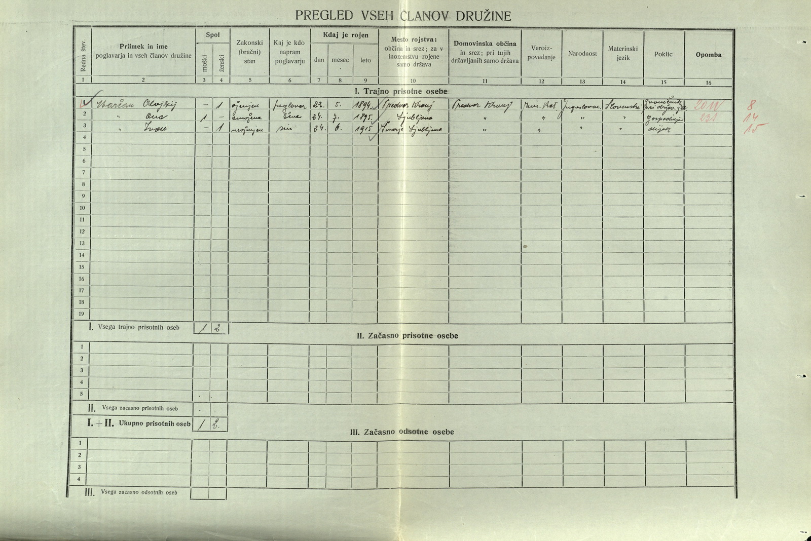 | 16/499 | Ivan Marc | 1886 | Resljeva ulica 25 | Ljubljana 1931 (K-Ž) | |