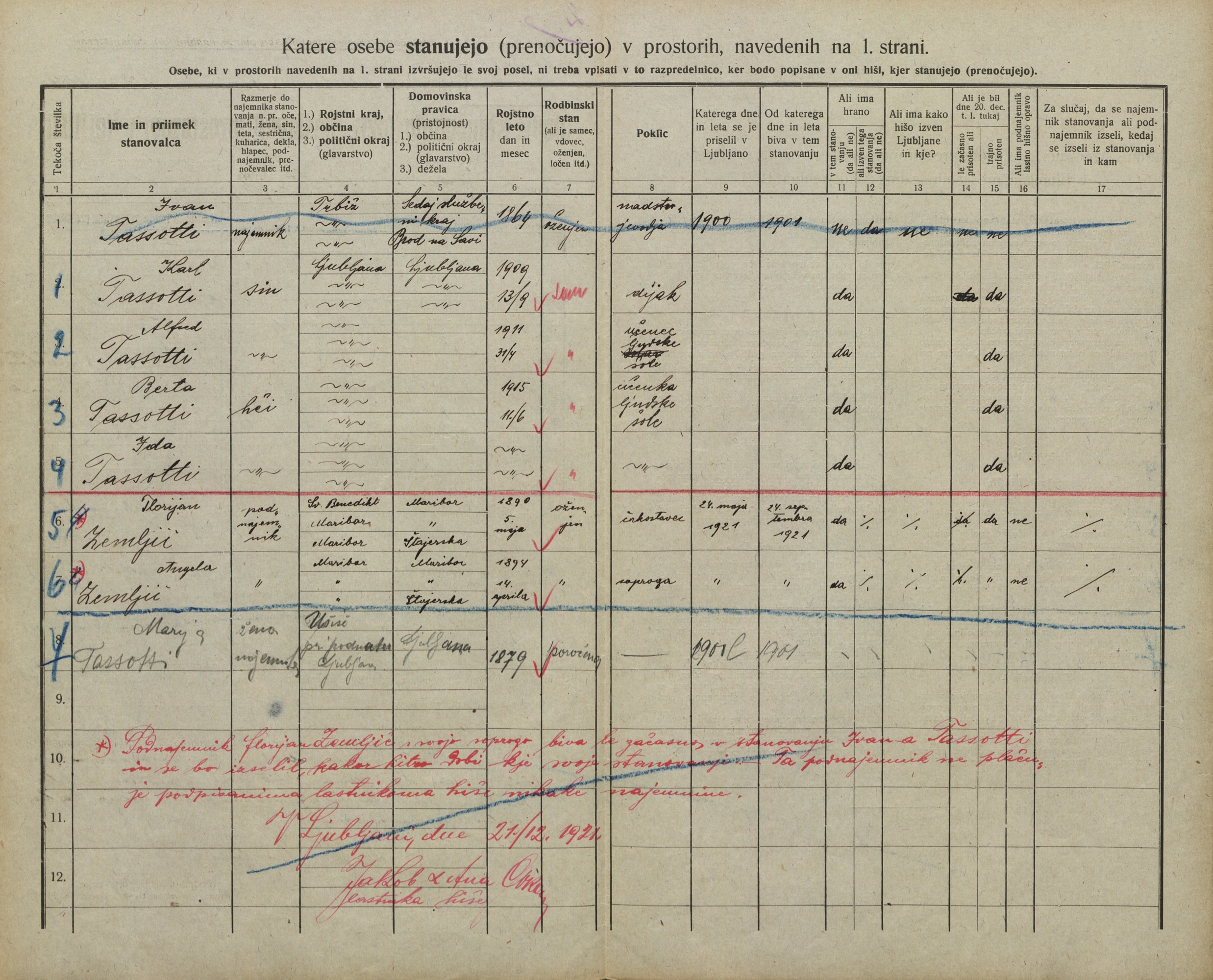 | 10/499 | Ivan Tassotti | 1862 | Žibertova ulica 23 | Ljubljana 1931 (K-Ž) | |