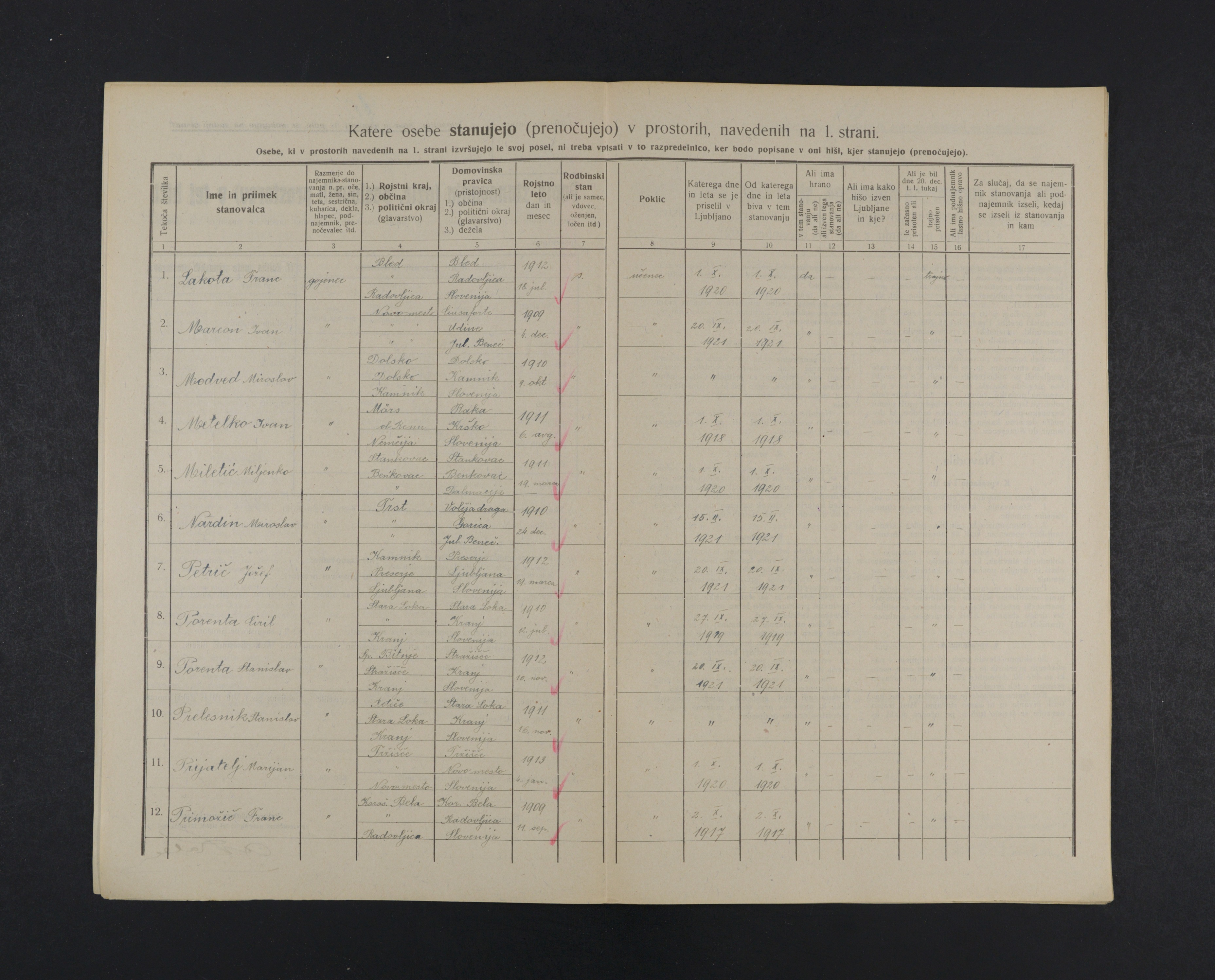 | 17/499 | Ivan Marc | 1912 | Resljeva ulica 25 | Ljubljana 1931 (K-Ž) | |