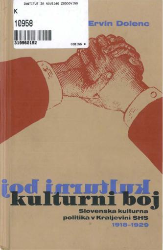 2.01 Znanstvena monografija | Dolenc, Ervin | Med kulturo in politiko : Kulturnopolitična razhajanja v Sloveniji med svetovnima vojnama | Ljubljana | Inštitut za novejšo zgodovino | 2010 |