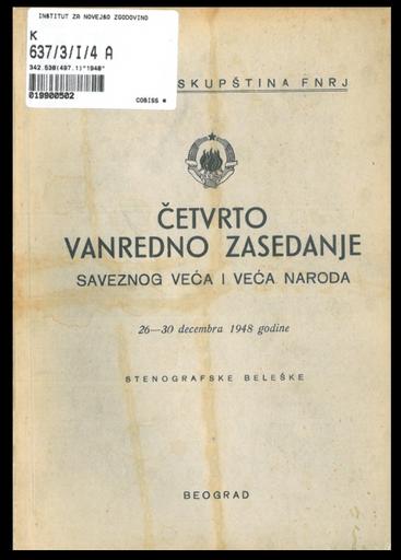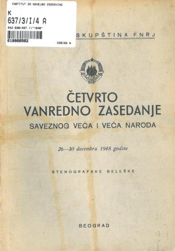 • Četvrto vanredno zasedanje saveznog veća i Veća naroda Narodne skupštine FNRJ