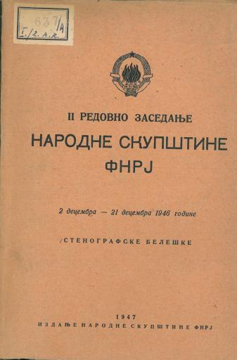 • Drugo redovno zasedanje Narodne skupštine FNRJ 2 - 21 decembra 1946 godine
