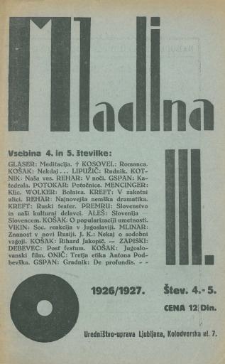 Vsebina 4. in 5. številke: GLÄSER: Meditacija; +KOSOVEL: Romanca; KOŠAK: Nekdaj ...; LIPUŽIČ: Rudnik; KOTNIK: Naša vas; REHAR: V noči; GSPAN: Katedrala; POTOKAR: Potočnice; MENCINGER: Klic; WOLKER: Bolnica. KREFT: V zakotni ulici; REHAR: Najnovejša nemška dramatika; KREFT: Ruski teater; PREMRU: Slovenstvo in naši kulturm delavci; ALEŠ: Slovenija Slovencem; KOŠAK: O popularizaciji umetnosti; VIKIN: Soc. reakcija v Jugoslaviji; MLINAR: Znanost v novi Rusiji; J. K.: Nekaj o sodobni vzgoji; KOŠAK: Rihard Jakopič; ZAPISKI: DEBEVEC: Post festum; KOŠAK: Jugoslovanski film; ONIČ: Tretja etika Antona Podbevška; GSPAN: Gradnik: De profundis.