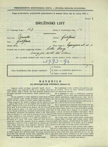 SI_ZAL_LJU/0504, t.e. 305, Popis prebivalstva 31. 3. 1931, Bohoričeva ul. - Cegnarjeva ul.